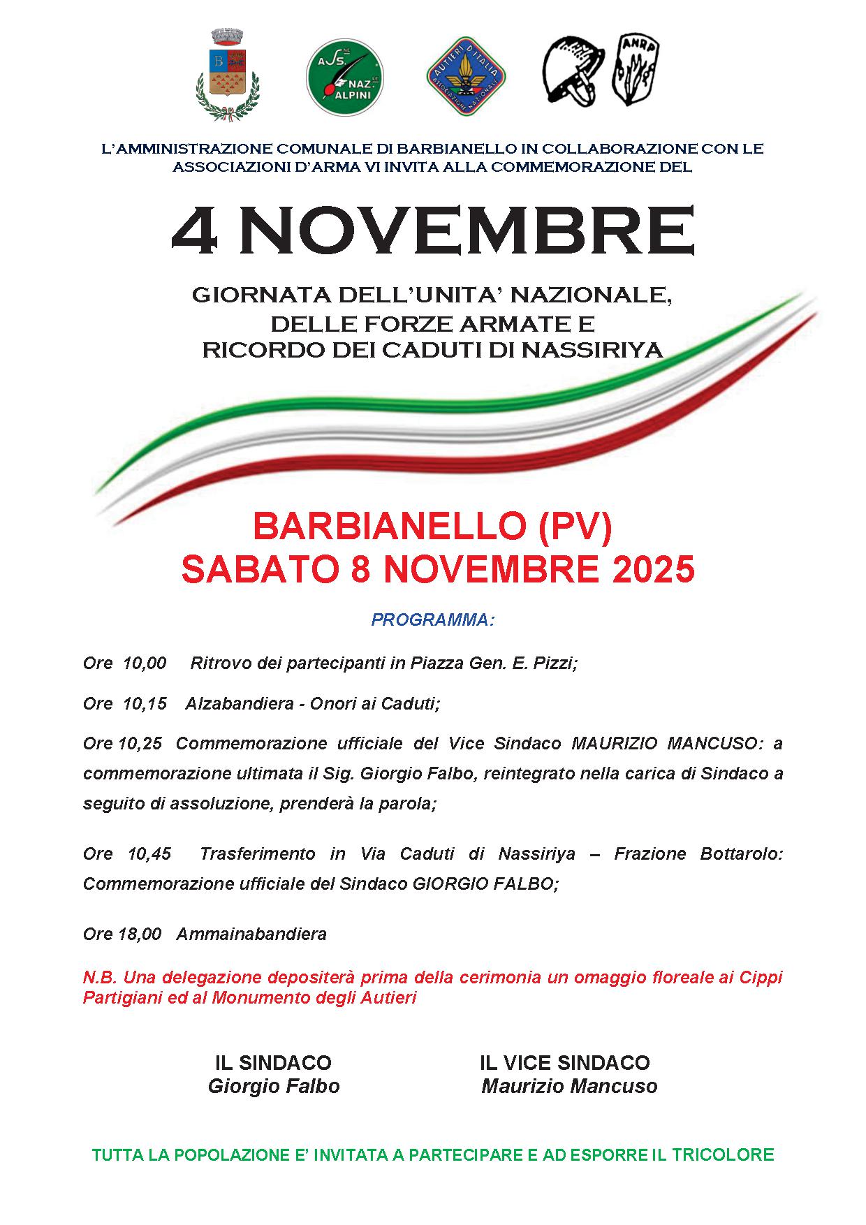 La Cittadinanza è invitata sabato 8 novembre 2025 alla Cerimonia in oggetto, come da programma allegato.