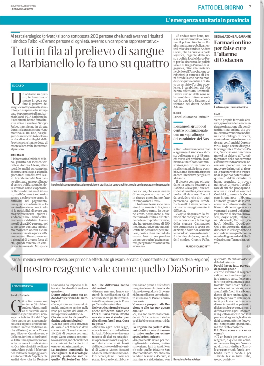 Articolo "Provincia Pavese" del 23/04/2020 pg.7