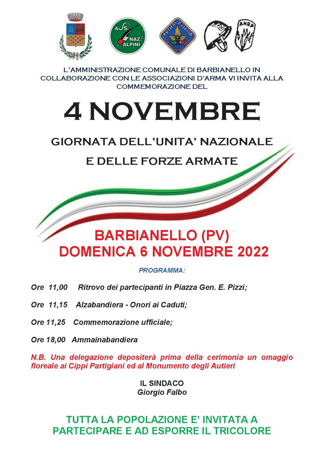 IN ALLEGATO PROGRAMMA DELLE COMMERMORAZIONI DEL "4 NOVEMBRE"